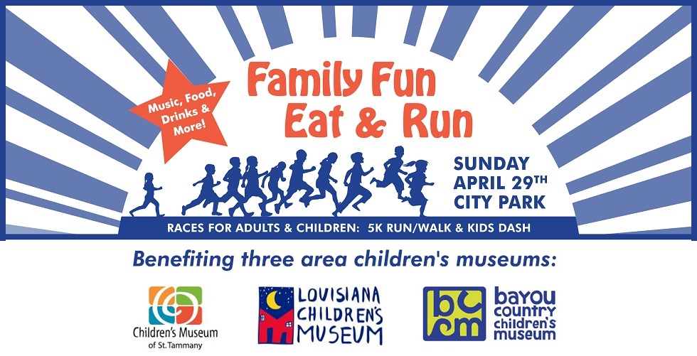 The Petroleum Industry Promoting Education (PIPE) organization is sponsoring their 3rd annual family fun eat and run to support our three local Children’s Museums. The 5k and 1/2 mile run/walk will be held at City Park in New Orleans on Sunday, April 29, 2018, starting at 8:30 am. Proceeds from the fun run will support the Louisiana Children’s Museum-New Orleans, the Bayou Country Children’s Museum in Thibodaux and the Children’s Museum of St. Tammany in Covington.