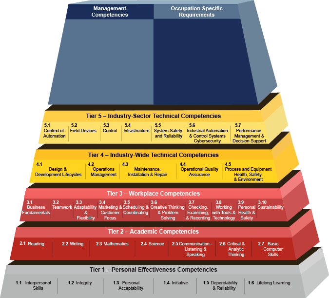 Visit the Automation Competency Model web page to learn more about each skill shown in the pyramid.